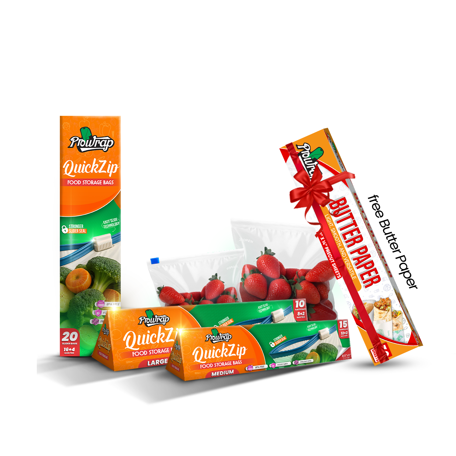 Organize, store, and protect with the Prowrap QuickZip Storage Combo โ a complete set of Small, Medium, and Large QuickZip bags, designed to handle everything from daily food storage to small business packaging. As a bonus, you get Butter Paper absolutely FREE, making this combo even more value-packed.